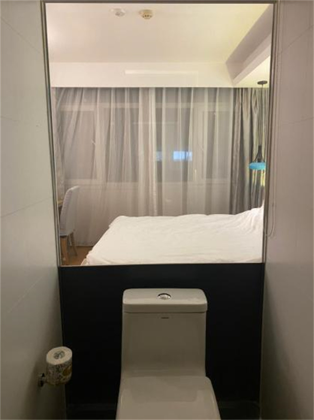 更加讓我覺得震驚的是:住過的其中一個酒店給玻璃墻做了卷簾,但萬萬沒想到的是,卷簾設(shè)計在衛(wèi)生間外面!對,就是你想的那樣,外面的人可以直接在衛(wèi)生間外面把卷簾拉上去,OMG!這到底是為了什么惡趣味?