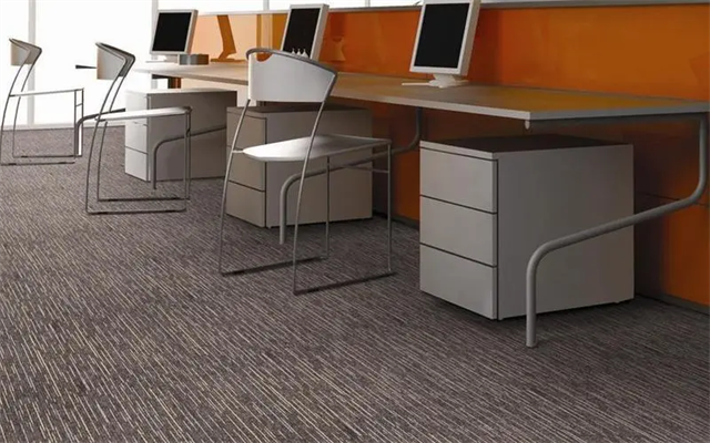 2、化纖地毯:耐磨有彈性,有著防然、防污、防靜電、防蟲等特點,由于耐磨程度較好,可以使用在大面積的開放式辦公區(qū)。