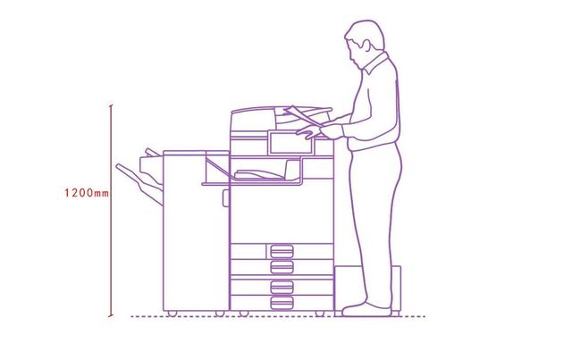 影印室是打印機、碎紙機、掃描儀、打印紙張存放的地方,可進行文件裁剪、訂裝等工作。柜式打印機的安裝高度為1.2mm。連體打印機需預留出紙口的寬度。