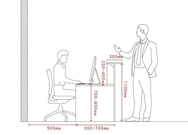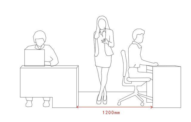 6.2.1 辦公室的通道尺寸不應少于0.9m,滿足兩個人正面和側面同時通過。