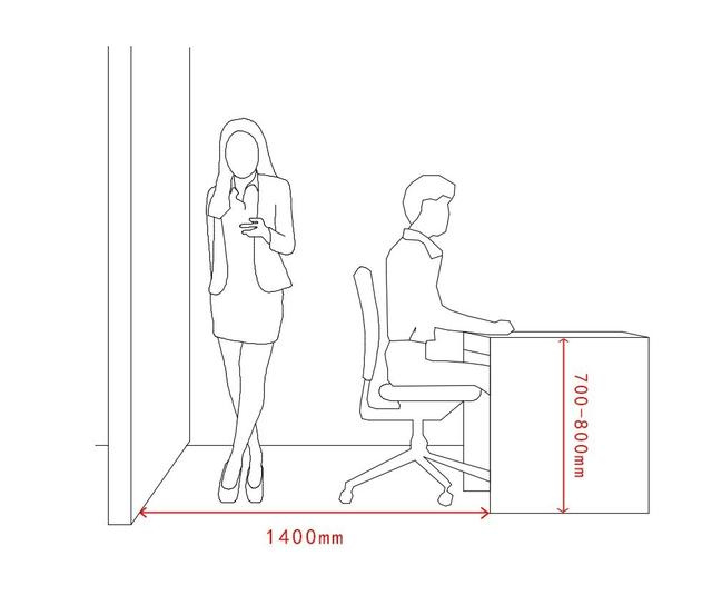 6.2.6 辦公桌距離后方墻面或物體的距離不應小于1.4m。·